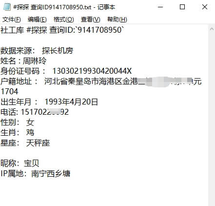 查询信息只限你本人阅读,不得在网络上传播!